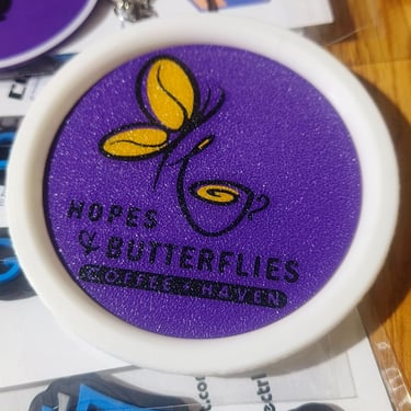 Consistent design across keychain and coaster formats